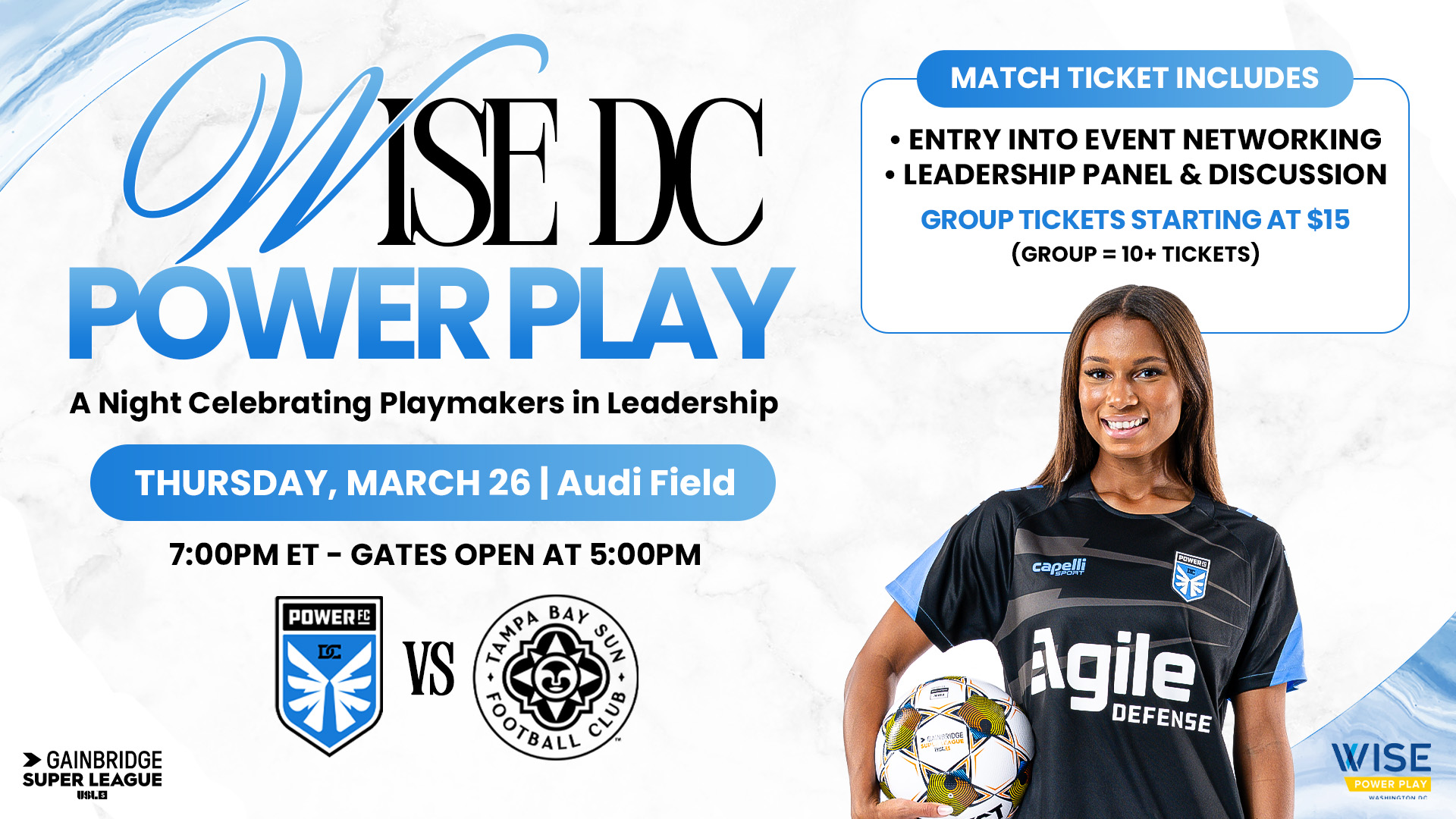 Schedule Buy Tickets Shop Merch ONE DISTRICT. ONE POWER. 2025/26 Season Tickets 2025/26 Single Match Tickets 2025/26 Group Tickets LATEST NEWS VIEW ALL NEWS DC Power Football Club Sign University of Virginia Defender Kiki Maki msoverinsky, March 19, 2026, 3:00 pm Read More Post-Match Facts: DC Power FC Edged by Carolina Ascent FC 0-1 msoverinsky, March 17, 2026, 4:15 pm Read More DC Power Football Club STEM Field Trip Match Giveaway Update msoverinsky, March 17, 2026, 12:03 pm Read More NOW PLAYING Up Next DCPFC SHOP OPEN NOW! SHOP NOW The Gainbridge Super League Learn more