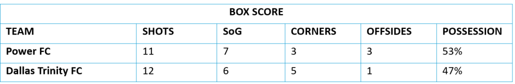 - Power FC moved to 1-1-2 all-time against Dallas Trinity FC.