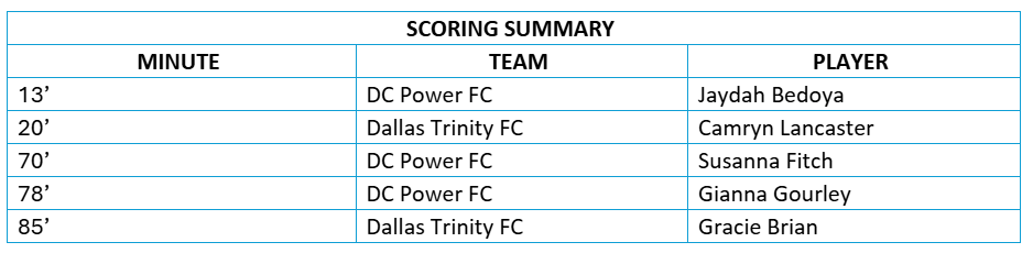 - This is DC Power FC’s first win against Dallas Trinity FC on the road.