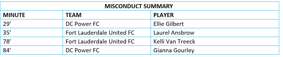 Fort Lauderdale United FC Lineup: Bella Hara, Kelli Van Treeck, Madison McComasky (Kate Colvin 81’), Ella Simpson, Laurel Ansbrow, Stella Nyamekye (Lilly McCarthy 80’), Lily Nabet, Taylor Smith (Kathrynn Gonźalez 69’), Princess Ademiluyi (Kiara Locklear 68’), Sh’nia Gordon (Julia Grosso 45’) and Jasmine Hamid.