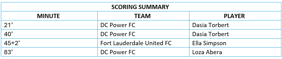 DC Power FC Lineup: Morgan Aquino, Susanna Fitch, Sydney Cummings, Ellie Gilbert, Paige Almendariz (Madison Murnin 76’), Alexis Theoret, Emily Colton (Katrina Guillou 76’), Anna Bagley, Jaydah Bedoya, Dasia Torbert (Loza Abera 80’) and Gianna Gourley.