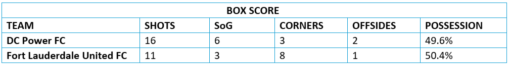 DC Power FC (3-3-4, 13 PTS) 3 vs. 1 Fort Lauderdale United FC (4-2-4, 16 PTS)