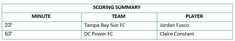 Tampa Bay Sun FC (1-6-9, 12 PTS) 1 vs. 1 DC Power FC (4-5-7, 19 PTS)
