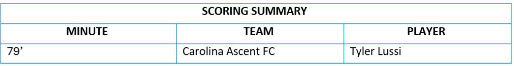 DC Power FC (5-6-8, 23 PTS) 0 vs. 1 Carolina Ascent FC (8-7-5, 29 PTS)