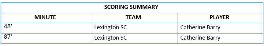 Lexington SC Lineup: Katherine Asman, Taylor Aylmer, Mckenzie Weinert (Emina Ekic 60’), Alyssa Bourgeois, Catherine Barry, Ally Brown, Hannah Johnson (Cassie Rohan 78’), Hannah Sharts, Regan Steigleder, Nicole Vernis (Tati Fung 78’) and Sarah Griffith (Hannah White 67’).