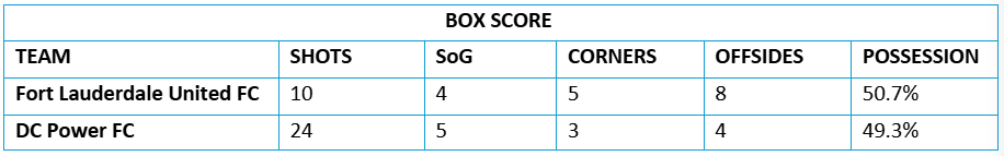 Fort Lauderdale United FC (5-9-8, 23 PTS) 3 vs. 1 DC Power FC (6-9-8, 26 PTS)