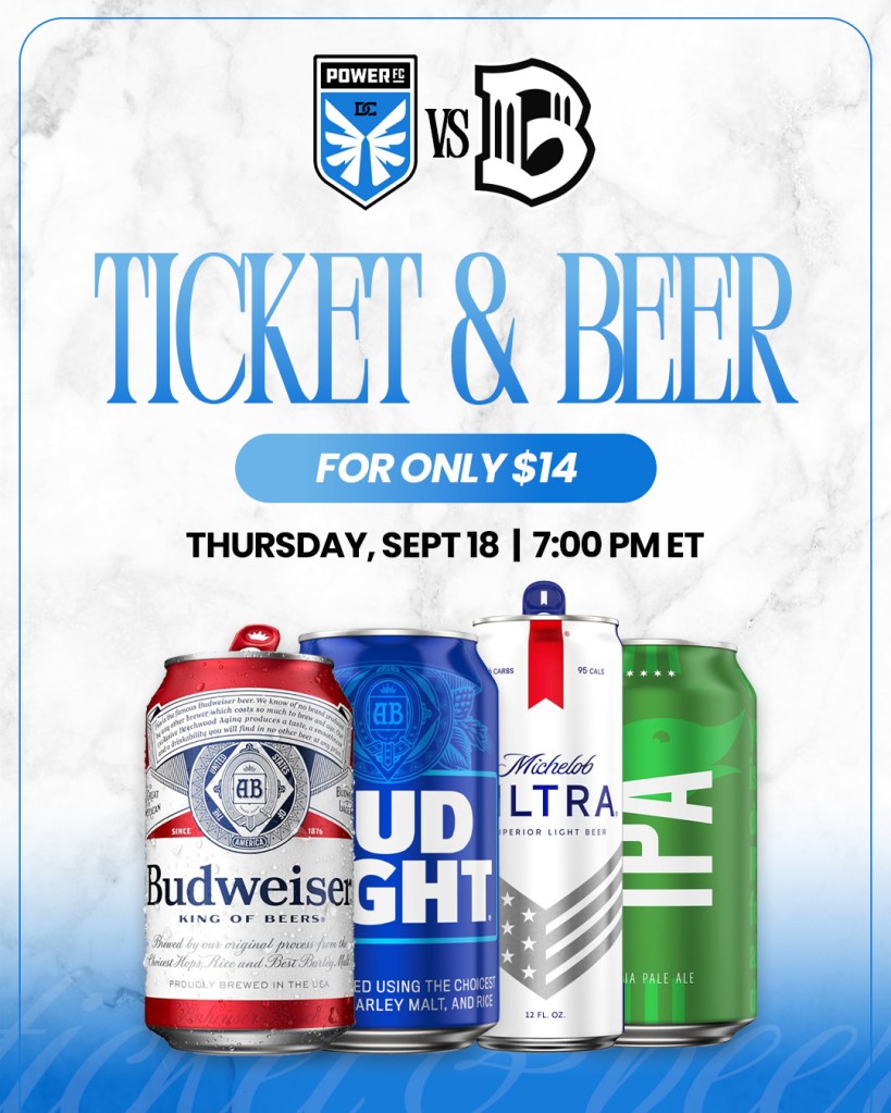 Enjoy some sips in your seat with DC Power FC’s Ticket & Beer offer! Select from 4 choices – Budweiser, Bud Light, Michelob Ultra, or Goose Island IPA!